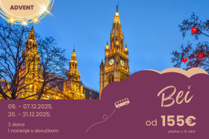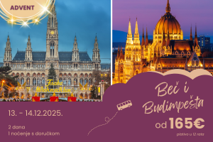 Dvodnevno putovanje koje spaja najbolje od Carskog grada i Kraljice Dunava, nudi dvostruku dozu divljenja spektakularnim građevinama te uživanja u svjetlima, glazbi, mirisima i okusima koje pružaju raskošni adventski sajmovi.