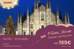 Talijanska prijestolnica mode Milano uz božićne dekoracije postaje još elegantnija, a prijestolnica ljubavi Verona još romantičnija. Ljubitelji prirode uživat će tijekom ovog putovanja u pogledu na bajkovita jezera Como, Lugano i Garda te idilične snježne planinske vrhove.