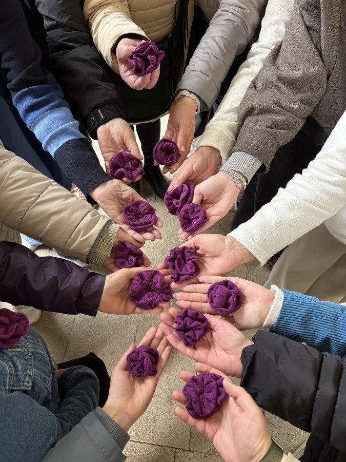 Organizacije su se povezale kroz Erasmus+ projekt Spikey’s Clinic for Professional Dreamers, usmjeren na razvoj alata za brigu o sebi i prevenciju sindroma izgaranja kod osoba koje rade s mladima. Sudjelovanje u ovom međunarodnom partnerstvu otvorilo je prostor za suradnju, koja se nastavila kroz zajedničko sudjelovanje u radionici Ruže protiv nasilja. Roses Against Violence je međunarodna kampanja usmjerena na podizanje svijesti o obiteljskom i rodno uvjetovanom nasilju kroz umjetničko izražavanje i tzv. yarn bombing, umjetnost heklanja i kukičanja. Ljubičasta boja predstavlja dostojanstvo, pravdu i ravnopravnost.